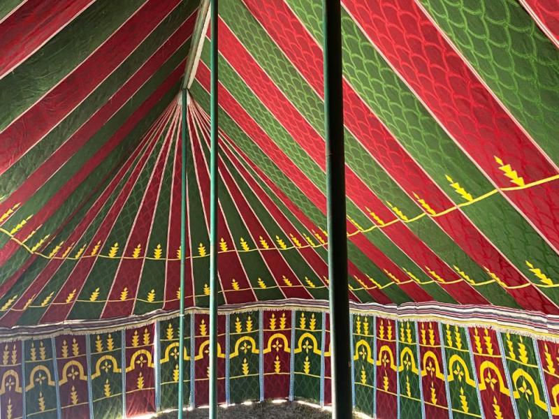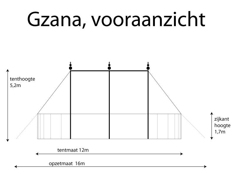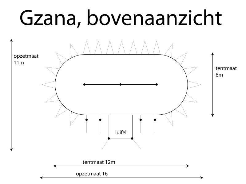Gzana is een originele Noord-Afrikaanse Caïdale tent, gemaakt van katoen en canvas. Van buiten uitnodigend en van binnen sprookjesachtig.De decoraties van zowel het interieur en het exterieur zijn een mix van autoriteit, spiritualiteit en schoonheid.